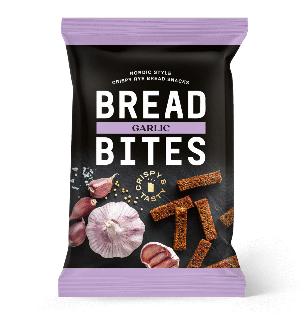 bread 67% (wheat flour, coarse-grained rye flour, wholegrain rye flour, water, leaven, barley malt extract, compressed yeast, salt), rapeseed oil, palm oil, seasoning mix (garlic 3%, salt, flavouring (including mustard)).